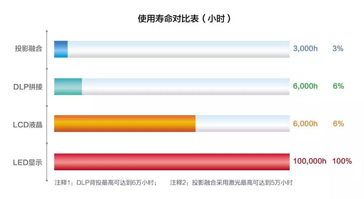 海佳彩亮LED顯示屏100,000小時(shí)很長(zhǎng)壽命,相當(dāng)于33.3個(gè)投影儀壽命相加(投影儀的典型壽命僅3000小時(shí)),打破了時(shí)間限制,成就更多精彩。